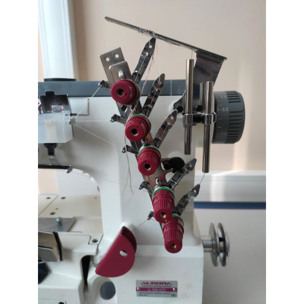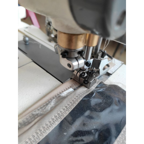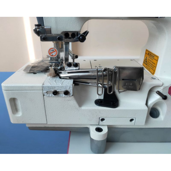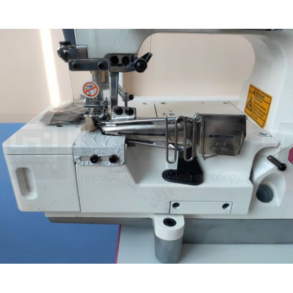 Плоскошовная высокоскоростная машина цепного стежка с верхним раскладчиком нити, предназначена для окантовки бейкой трикотажных изделий. Выполняет двусторонний застилочный шов.