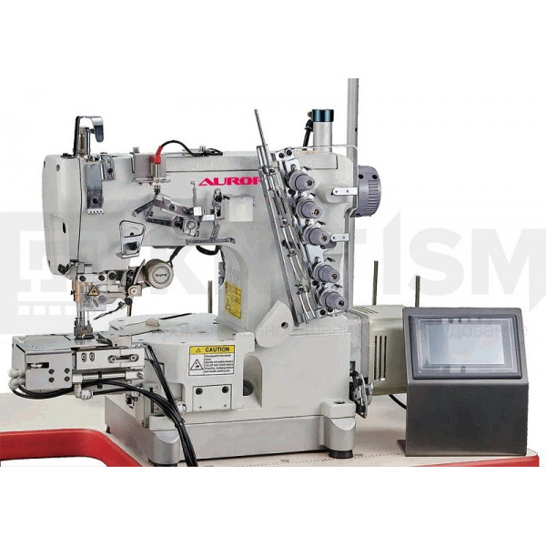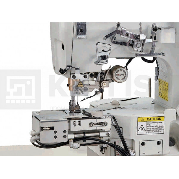 Трехигольная пятиниточная плоскошовная машина с цилиндрической платформой, пневматическим устройством HG для подгибки, прямым приводом, системой автоматической обрезки нити и подъемом лапки пневматического типа. Предназначена для подгибки низа трикотажных изделий, устройство HG позволяет повысить производительность и качество отшиваемых изделий. Широко применяется для шитья эластичной и трикотажной ткани в таких изделиях как: спортивная одежда, футболки, поло и т.д.