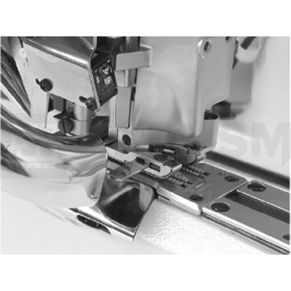 Четырехигольный шестиниточный флетлок со свободным рукавом, прямым приводом, двухсторонней обрезкой края материала, пневматическим устройством автоматической обрезки цепочки нити и автоматического подъема лапки предназначен для стачивания плечевых, боковых швов и рукавов из легких и средних материалов при изготовлении спортивной одежды, купальных костюмов и нижнего белья. Флетлок отлично подходит для обработки сложных разнонаправленных тканей, новых сильно растягивающихся материалов и материалов с плотным соединением нитей.