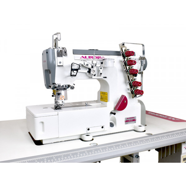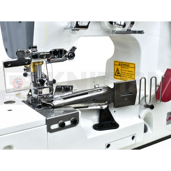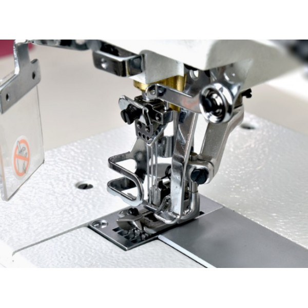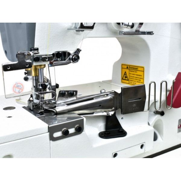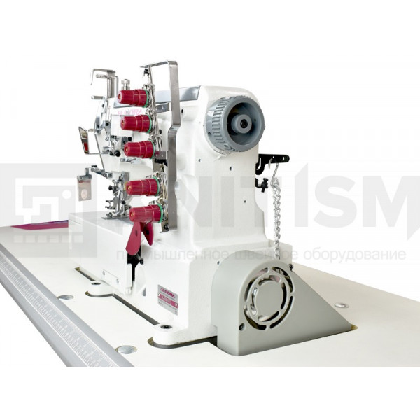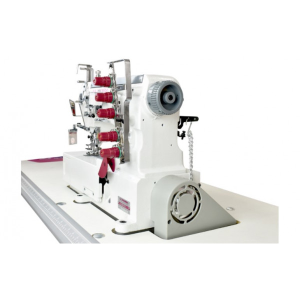 Трехигольная пятиниточная плоскошовная машина с плоской платформой универсального типа (2 в 1). Предназначена для широкого диапазона швейных операций: подгибка низа и окантовки бейкой трикотажных изделий, сшивания изделий встык или внахлест, распошив оверлочного шва. Широко применяется для шитья эластичной и трикотажной ткани в таких изделиях как: спортивная одежда, футболки, нижнее белье и т.д. Используется для шитья воротников и манжет.