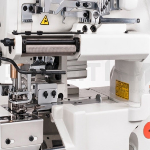 Устройство верхней подачи, управляемое электрическим цифровым контроллером, гарантирует равномерную длину и натяжение. Притачивание эластичной тесьмы или кружева на женское нижнее белье происходит плавно и правильно.