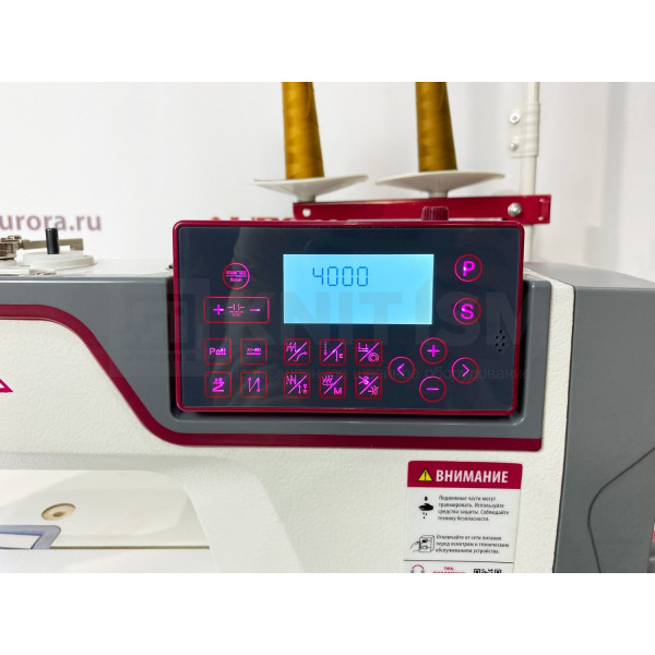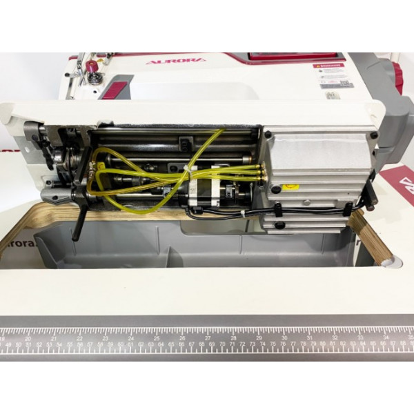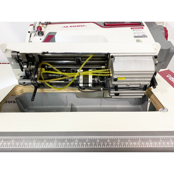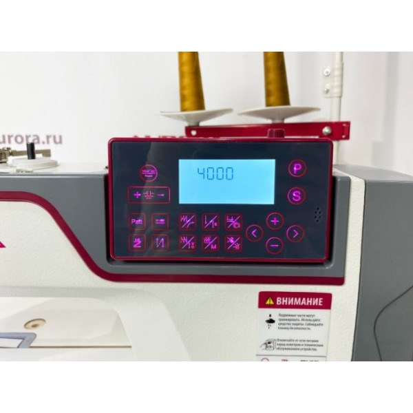 Компьютеризированная прямострочная машина с закрытой системой смазки, увеличенным вылетом рукава 305 мм, и шаговыми моторами отвечающими за автоматические функции: