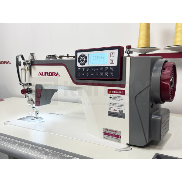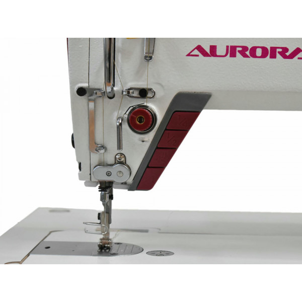 Одноигольная прямострочная машина для шитья легких и средних материалов с автоматической обрезкой нити, закрепкой нити и автоматическим подъемом лапки, позиционером иглы и возможностью программирования количества стежков в строчке. C соленоидом зажима верхней нити для чистого начала строчки, электронная регулировка длины стежка. Возможность выполнения декоративных (дизайнерских) строчек, в память машины заложено 9 видов дизайнерских строчек. Имеет голосовое сопровождение на русском языке.