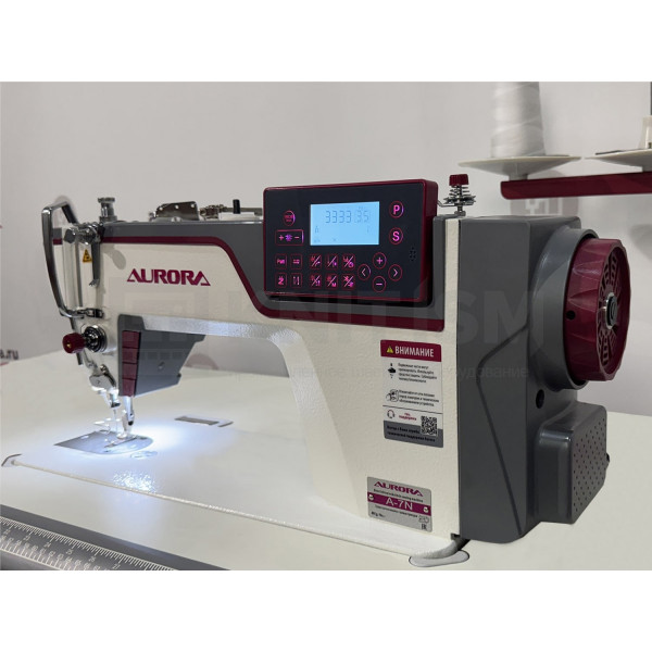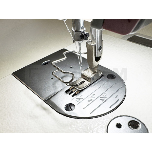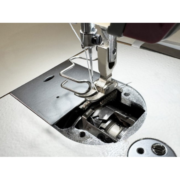 Одноигольная прямострочная машина для шитья легких и средних материалов с автоматической обрезкой нити двумя подвижными ножами, закрепкой нити и автоматическим подъемом лапки, позиционером иглы и возможностью программирования количества стежков в строчке. C соленоидом зажима верхней нити для чистого начала строчки, электронная регулировка длины стежка. Возможность выполнения декоративных (дизайнерских) строчек, в память машины заложено 9 видов дизайнерских строчек. Имеет голосовое сопровождение на русском языке.