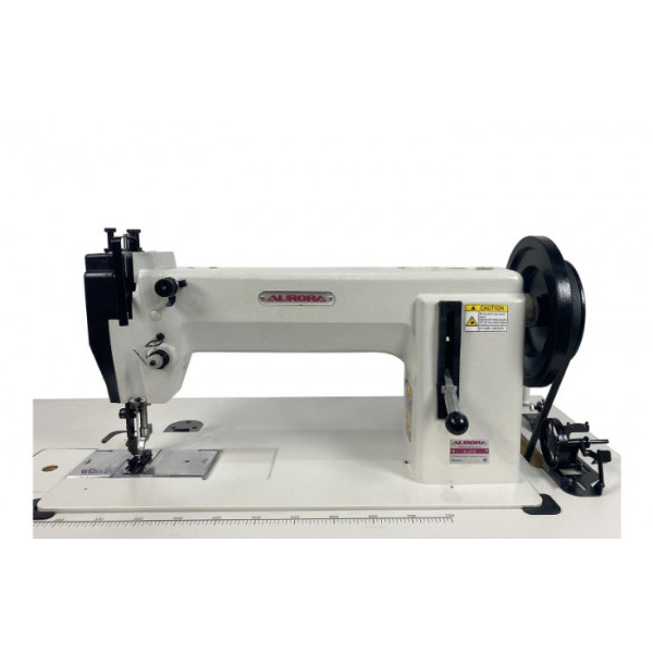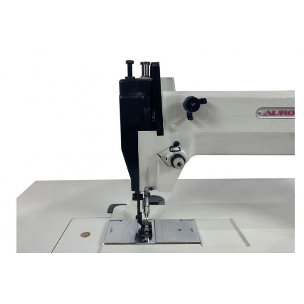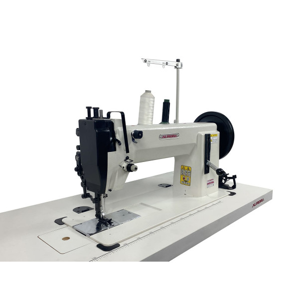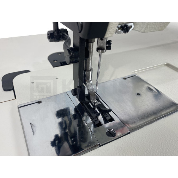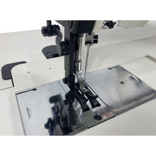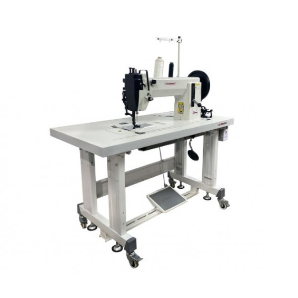 Промышленная одноигольная швейная машина с шагающей лапкой и увеличенным челноком для пошива сверхтяжелых материалов.