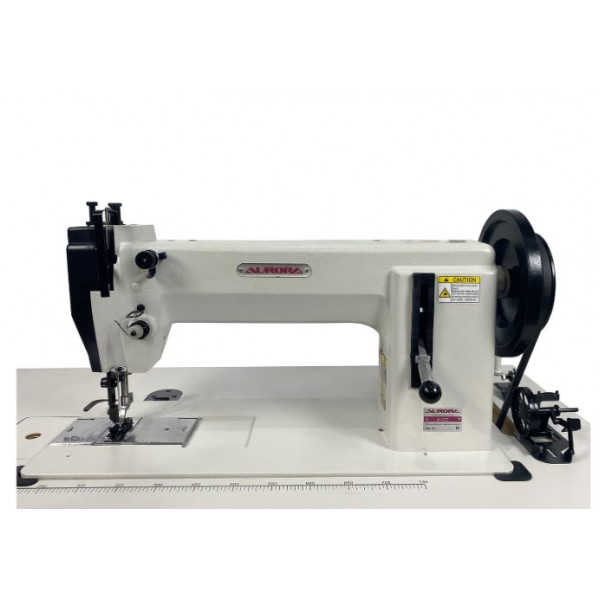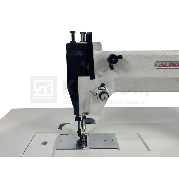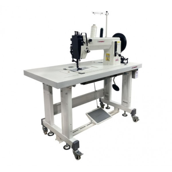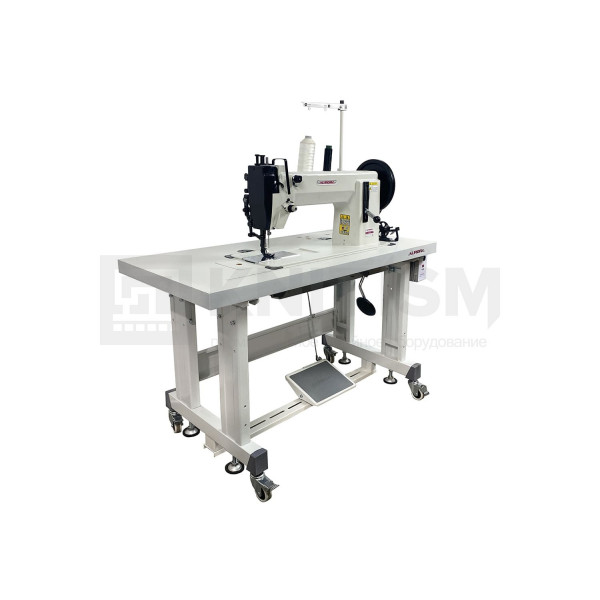 Промышленная одноигольная швейная машина с шагающей лапкой и увеличенным челноком для пошива сверхтяжелых материалов.