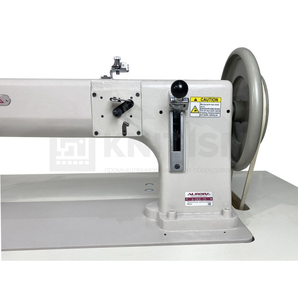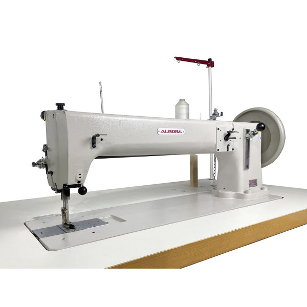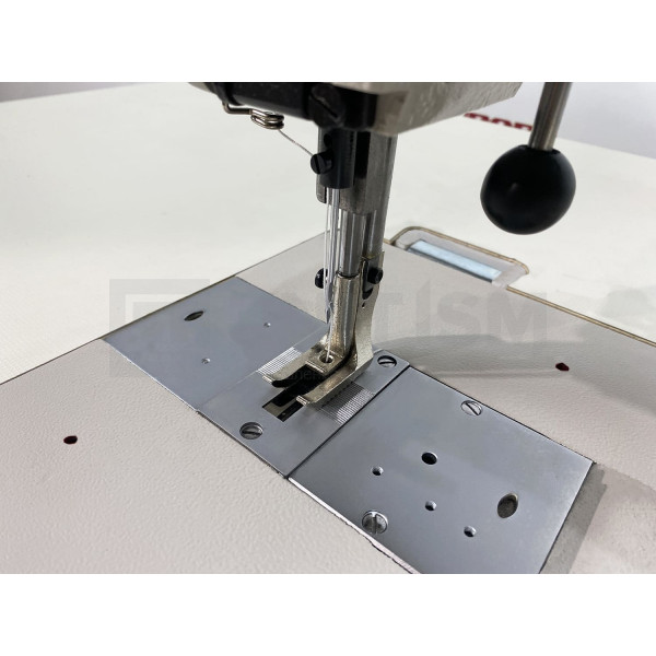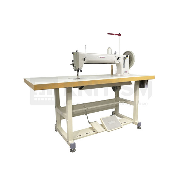 Одноигольная прямострочная машина двухниточного челночного стежка с тройным (унисонным) продвижением, увеличенной платформой 635 мм и увеличенным качающимся челноком для пошива сверхтяжелых материалов. Машина предназначена для пошива строп, мебельных чехлов, палаток, тентов, ручек для сумок, перчаток, ремней безопасности, автомобильных сидений и сумок.