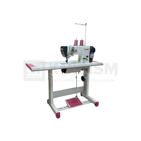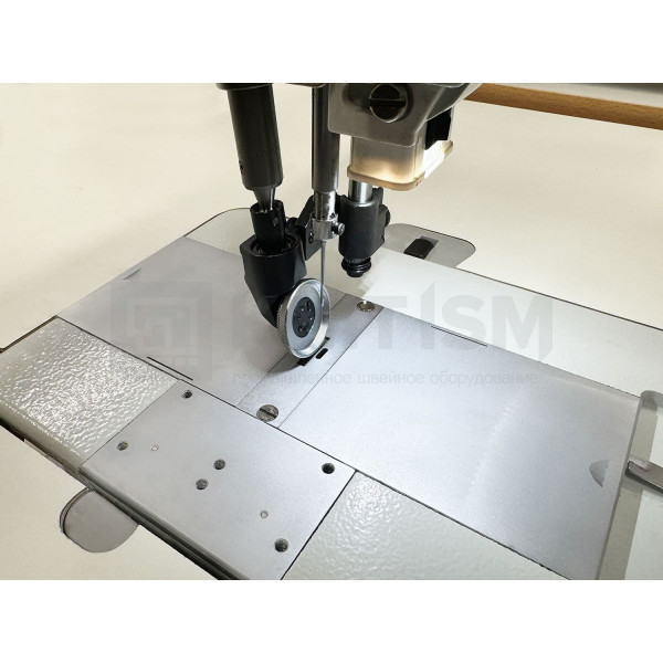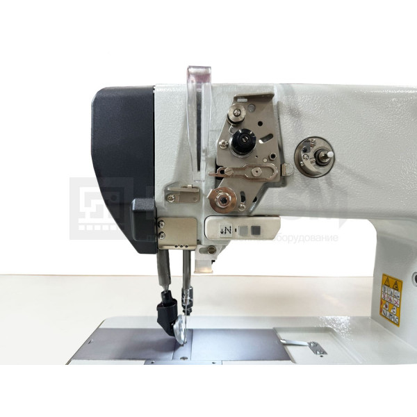 Прямострочная одноигольная машина с тройным продвижением, подача материала верхним и нижним роликом с игольным продвижением. С автоматической обрезкой и закрепкой нити, автоматическим подъёмом лапки и прямым приводом. Предназначена для шитья кожи, обуви, перчаток и подобных изделий.