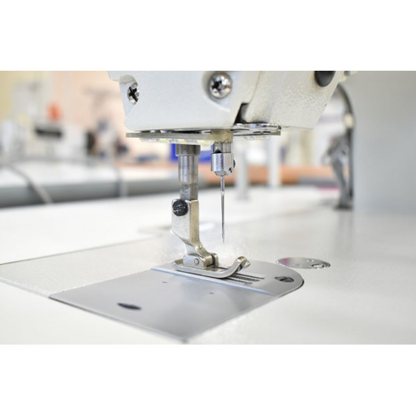 Одноигольная прямострочная машина двухниточного челночного стежка с игольным продвижением, автоматическим подъемом лапки, автоматической обрезкой и закрепкой нити, позиционером иглы и возможностью программирования количества стежков в строчке. Предназначена для шитья легких и средних материалов. Игольное продвижение совместно с нижней транспортирующей рейкой предотвращают сдвиг слоев, исключают посадку и сборение материала. Соленоид зажима верхней нити срабатывает в конце строчки и обеспечивает аккуратную обрезку нити.