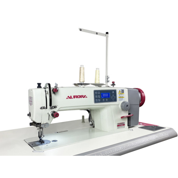 Одноигольная прямострочная машина челночного стежка с игольным продвижением и задним пуллером с роликами резинового типа для шитья средних и тяжелых материалов, автоматической обрезкой нити, закрепкой нити и автоматическим подъемом лапки, позиционером иглы и возможностью программирования количества стежков в строчке, оснащена соленоидом зажима верхней нити для чистого начала строчки.
