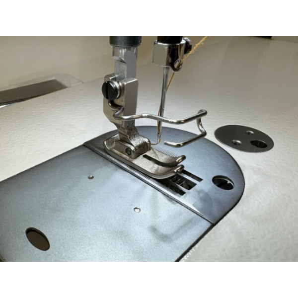 Игольное продвижение совместно с нижней транспортирующей рейкой предотвращают сдвиг слоев, исключают посадку и сборение, при пошиве изделий из средних и тяжелых материалов.