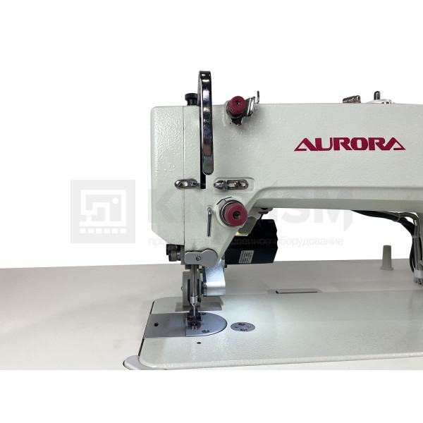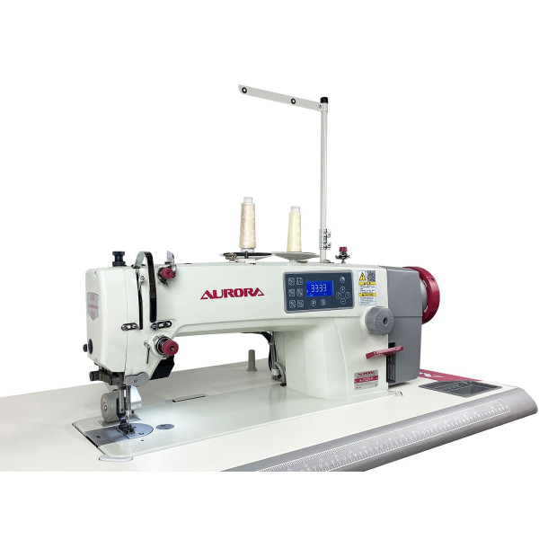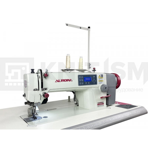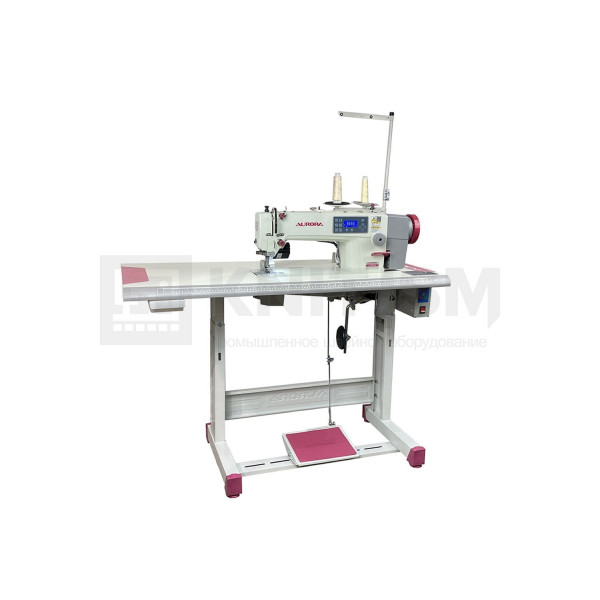 Одноигольная прямострочная машина челночного стежка с игольным продвижением и задним пуллером с роликами резинового типа для шитья средних и тяжелых материалов, автоматической обрезкой нити, закрепкой нити и автоматическим подъемом лапки, позиционером иглы и возможностью программирования количества стежков в строчке, оснащена соленоидом зажима верхней нити для чистого начала строчки.