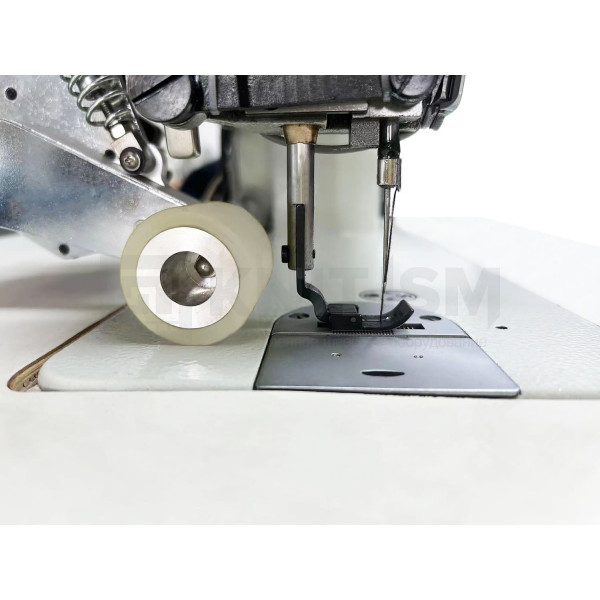 Игольное продвижение совместно с нижней транспортирующей рейкой и пуллером продвижения предотвращают сдвиг слоев, исключают посадку и сборение, при пошиве изделий из средних и тяжелых материалов.