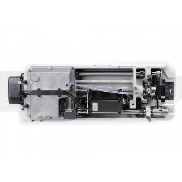 Шаговый двигатель управляет длиной стежка на прямом и обратном ходу, что позволяет контролировать длину стежка и выполнить закрепку точно поверх прямых стежков. Запатентованная конструкция шагового мотора обеспечивает функцию обрезки нити и подъема лапки. Длина кончика нити после обрезки составляет 3 мм, что снижает трудозатраты на дальнейшую зачистку изделия от длинных кончиков нити. Шаговый мотор обеспечивает выполнение 8 различных видов дизайнерских строчек. Благодаря оптимизированной внутренней конструкции и шаговому двигателю без подшипника, машина работает бесшумно во время закрепки, подъема прижимной лапки и обрезки нити. Герметичный масляный бак предотвращает попадание масла на ткань и уменьшает шум при работе машины.