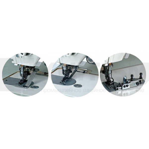 Прямострочная машина челночного стежка с нижним и переменным верхним продвижением с автоматическими функциями обрезки нити, закрепки, позиционирования иглы и подъема лапки предназначена для шитья средних материалов при производстве женской одежды, модельной одежды, блузок, жакетов, курток, пальто, а также штор, покрывал, декоративных подушек и др. предметов домашнего текстиля.