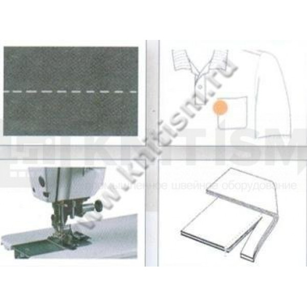 Одноигольная прямострочная машина челночного стежка с боковым ножом обрезки края материала. Машина предназначена для шитья воротников, клапанов карманов, а также и для других операций, в которых необходима обрезка края материала.