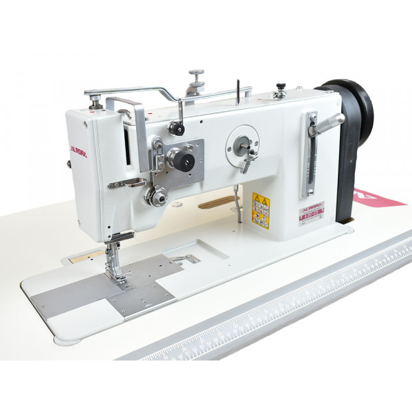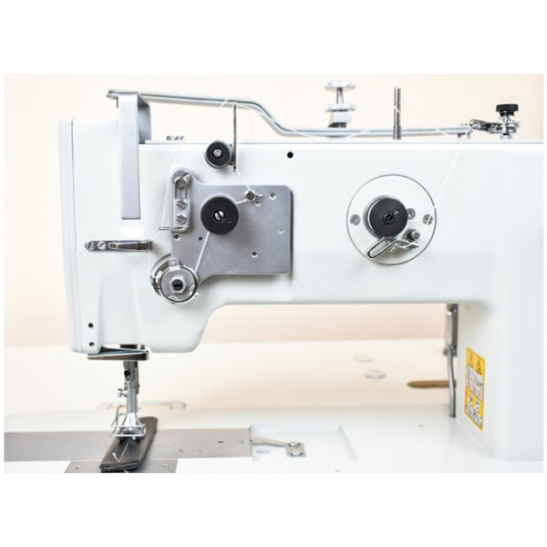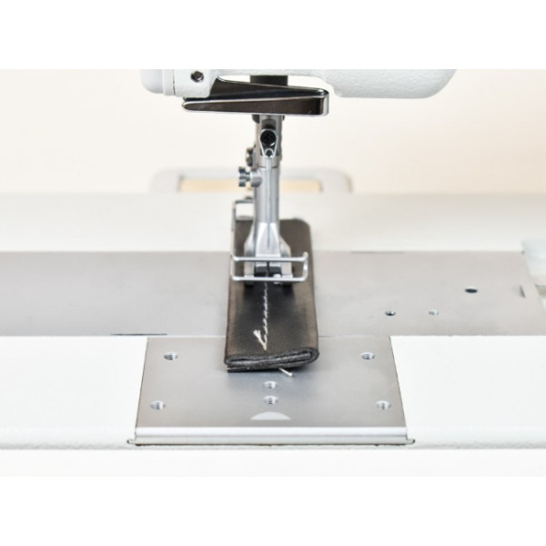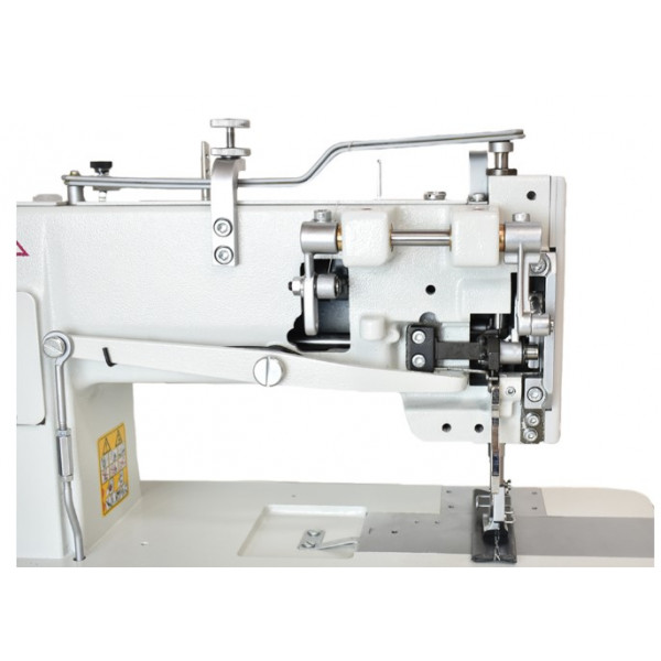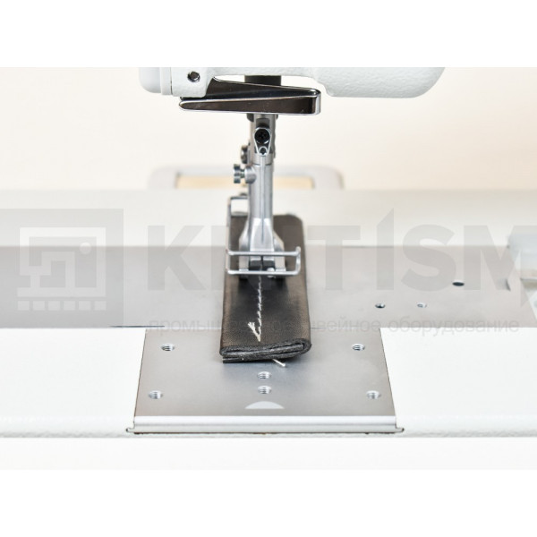 Одноигольная машина челночного стежка с тройным продвижением для обработки тяжелых материалов при пошиве мягкой мебели, кожи и технического текстиля.