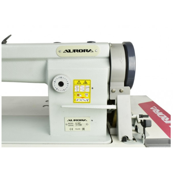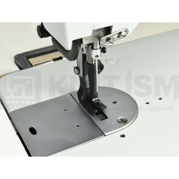 Прямострочная машина челночного стежка с тройным (унисонным) продвижением и увеличенным челноком. Капельная смазка. Машина предназначена для шитья изделий из тяжелых материалов (тентов, чехлов, сумок, дубленок и т. д.).