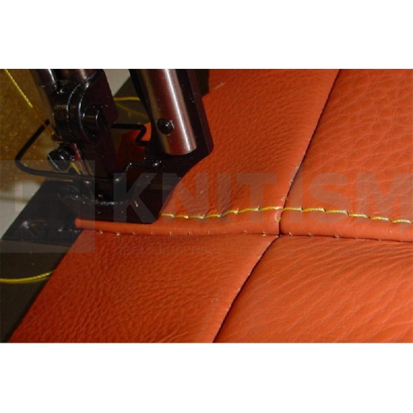 Прямострочная машина челночного стежка с тройным унисонным продвижением и увеличенным челноком предназначена для шитья изделий из тяжелых материалов и кожи, с использованием игольной и шпульной нити №10.