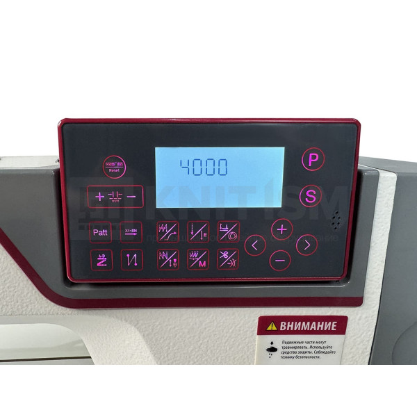 Электронный колено-подъемник для подъема прижимной лапки обеспечивает легкость и комфортность в процессе работы швеи.