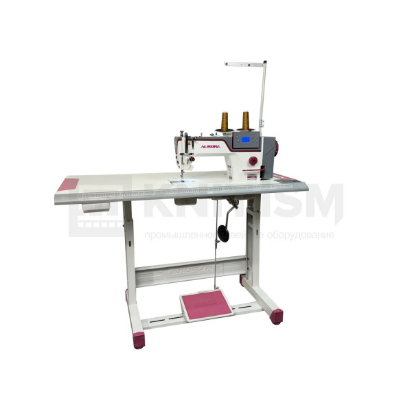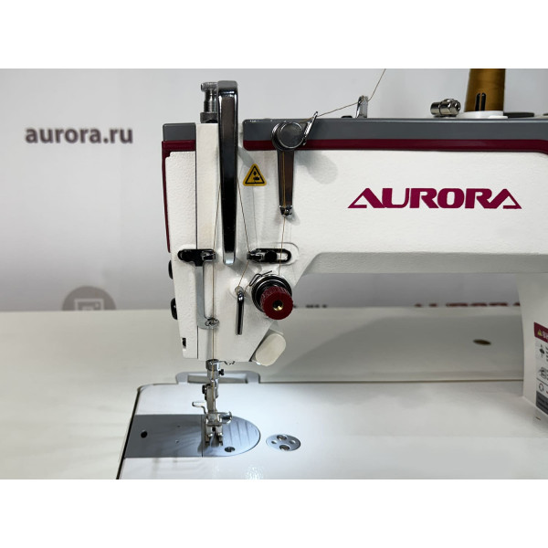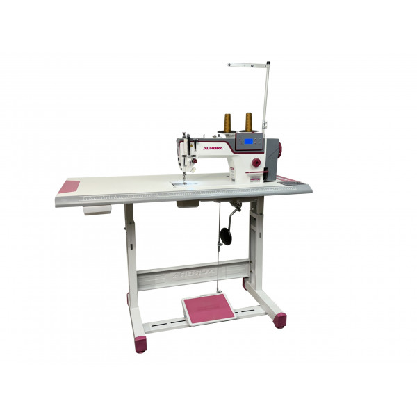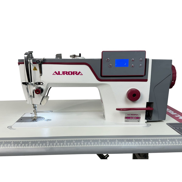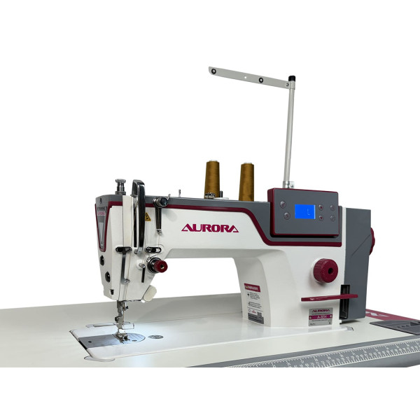 Одноигольная прямострочная машина челночного стежка для средних и тяжелых материалов со встроенным в головку сервоприводом, позиционером иглы, функцией плавный старт, функцией пошагового шитья и светодиодной подсветкой области шитья.