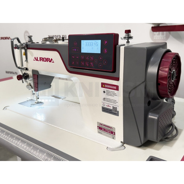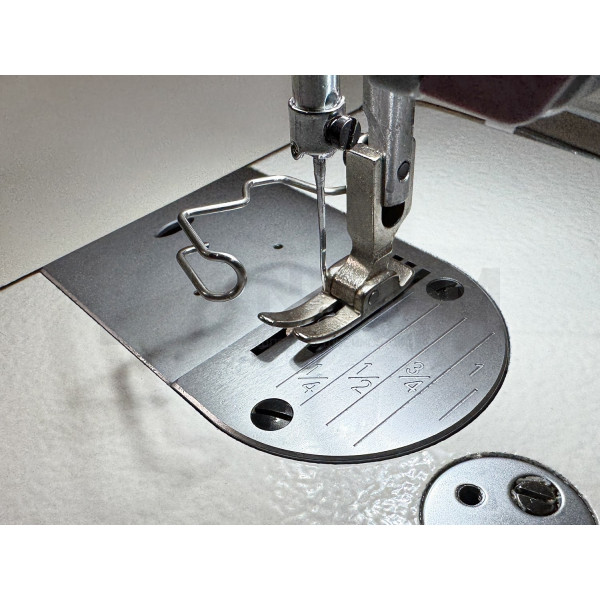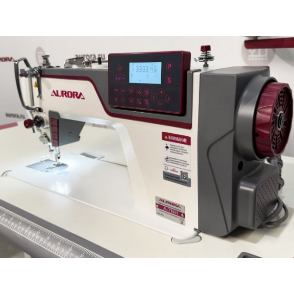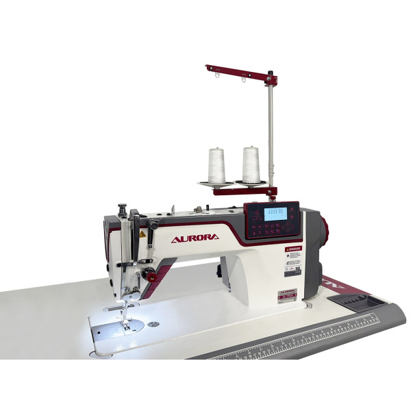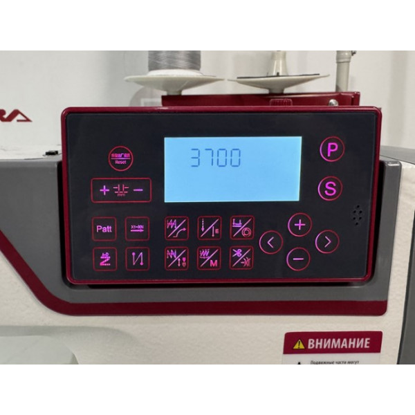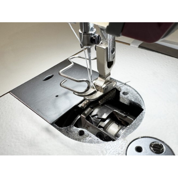 Одноигольная прямострочная машина для шитья средних материалов и тяжелых материалов с автоматической обрезкой нити двумя подвижными ножами, закрепкой нити и автоматическим подъемом лапки, позиционером иглы и возможностью программирования количества стежков в строчке. C соленоидом зажима верхней нити для чистого начала строчки, электронная регулировка длины стежка. Возможность выполнения декоративных (дизайнерских) строчек, в память машины заложено 9 видов дизайнерских строчек. Имеет голосовое сопровождение на русском языке.