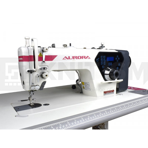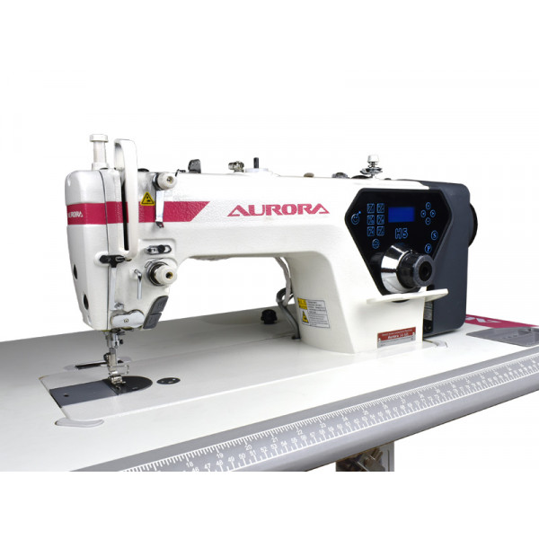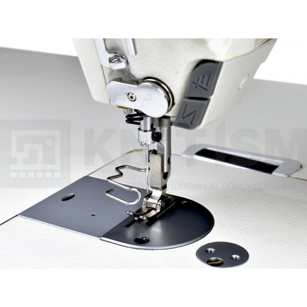 Одноигольная прямострочная машина для шитья средних и тяжелых материалов, увеличенным челноком, автоматической обрезкой нити, закрепкой нити и автоматическим подъёмом лапки, позиционером иглы и возможностью программирования количества стежков в строчке.