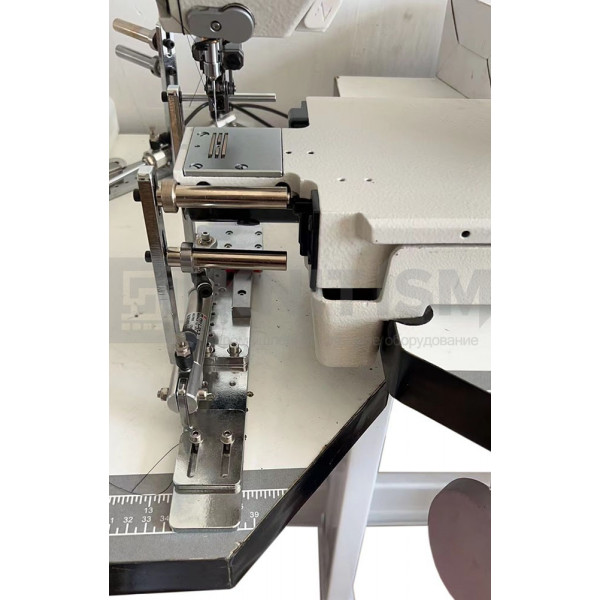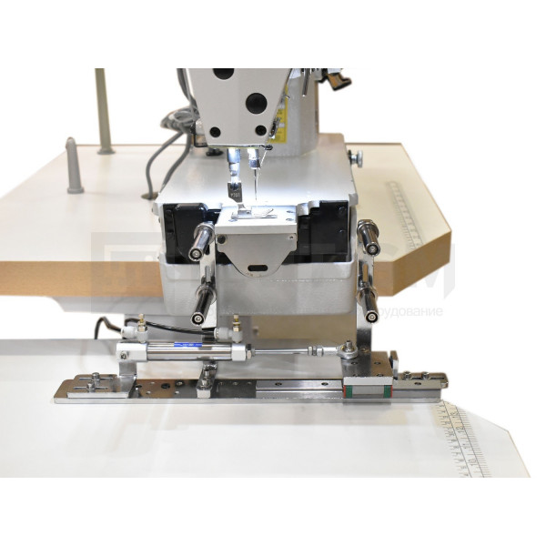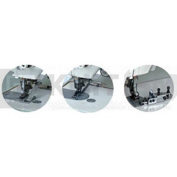 Прямострочная машина челночного стежка с цилиндрической платформой с автоматическими функциями обрезки нити, закрепки, позиционирования иглы и подъема лапки предназначена для шитья средних материалов при обработке манжет перчаток и рукавов, низа штанин из стрейч-материалов и др. деталей цилиндрической формы.