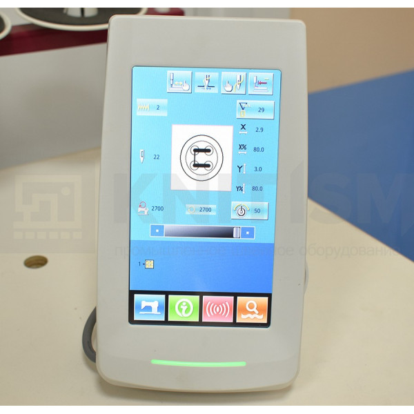 Электронная пуговичная машина с прямым приводом, автоматической обрезкой нитей, автоматическим подъемом лапки. Предназначена для пришивания пуговиц с 2,3,4 отверстиями и диаметром от 8 до 15 мм. Оснащена автоматическим подъемом лапки и обрезкой нити с электромагнитным приводом. Возможность подключения USB карты для переноса программ шитья. 33 встроенных программ шитья. Возможность добавить до 200 программ шитья.