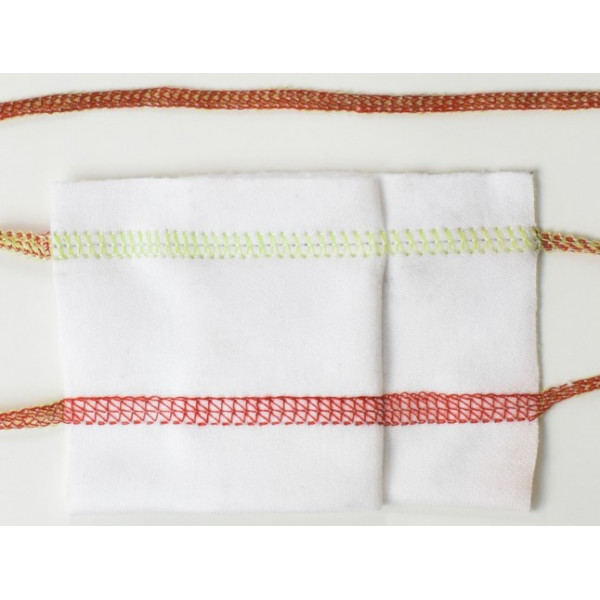 Величина дифференциальной подачи 0,6-1,3. Длина стежка – до 4,5 мм. Высота подъема лапки 5 мм. Диаметр рукава: 80 х 60 мм. Автоматическая смазка. Максимальная скорость шитья 4500 ст/мин. Стандартное расстояние между крайними иглами 5,6 мм. Игла UYx128GAS №75-90. Возможные межигольные расстояния 4.0, 4.8, 6.4 мм.