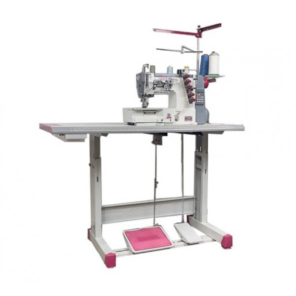 Плоскошовная высокоскоростная машина цепного стежка с верхним раскладчиком нити, с плоской платформой для пошива трикотажных изделий. Выполняет двусторонний застилочный шов (плоскошовная). Предназначена для общих швейных операций по трикотажным изделиям, чаше всего используется для подгибания низа трикотажных изделий, сшивания изделий встык или внахлест.