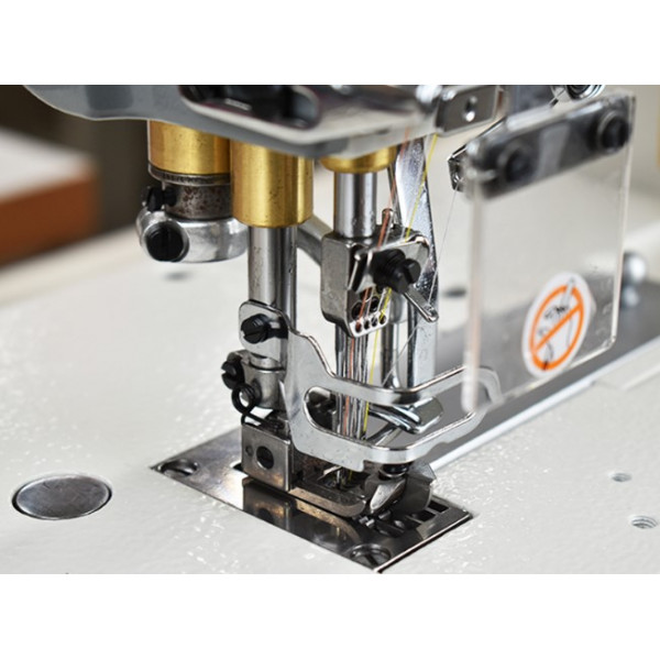 Четырехигольная плоскошовная машина с верхним раскладчиком нити предназначена для широкого диапазона швейных операций. Чаше всего используется для сшивания изделий встык или внахлест.