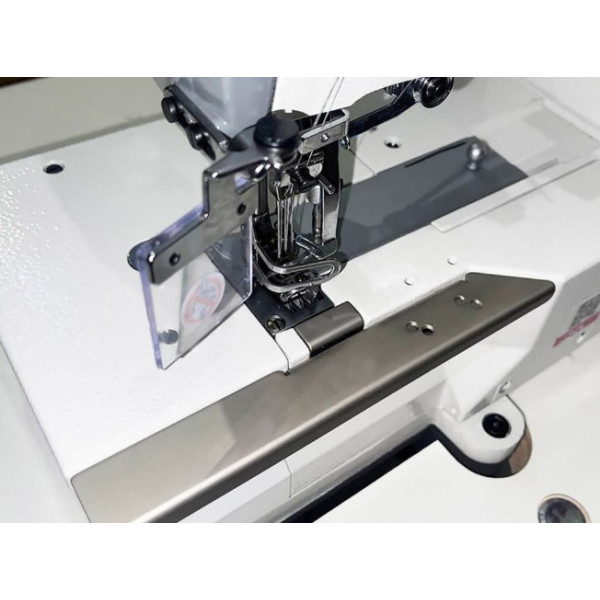 Плоскошовная высокоскоростная машина цепного стежка с плоской платформой и верхним раскладчиком нити, со встроенным в головку сервоприводом, позиционером иглы и автоматическим подъемом лапки электромагнитного типа.