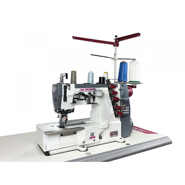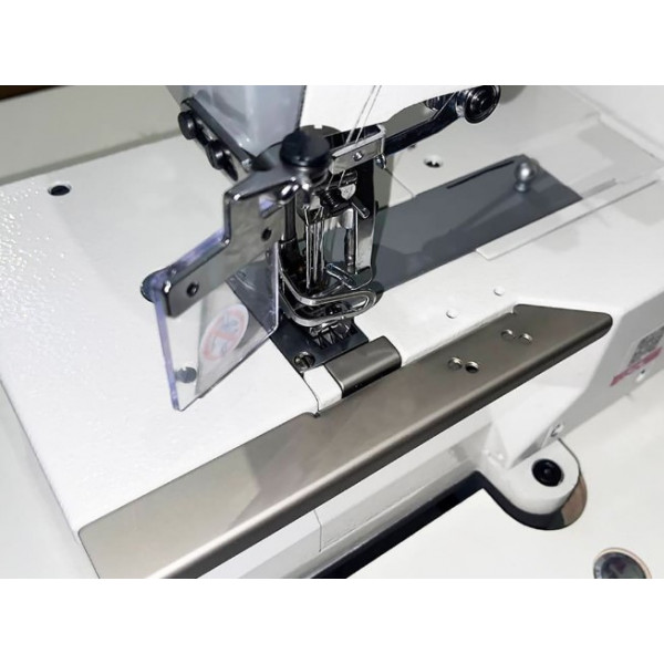 Плоскошовная высокоскоростная машина цепного стежка с плоской платформой и верхним раскладчиком нити, со встроенным в головку сервоприводом, позиционером иглы и автоматическим подъемом лапки электромагнитного типа.