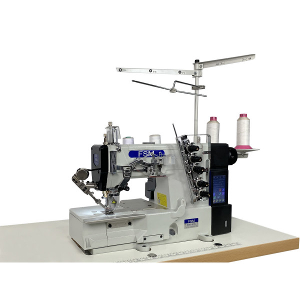 Cенсорная панель управления LCD; Автоматическая обрезка нитей: игольных, петлителя, раскладчика; Автоматический подъем прижимной лапки; Позиционирование игл в верхнем или нижнем положении; Встроенный сервомотор; Светодиодная подсветка области шитья; USB порт для зарядки устройств; Количество игл: 3; Количество нитей: 5; Величина дифференциальной подачи: 0,5-1,3; Длина стежка: до 4,5 мм; Высота подъема лапки: 6 мм; Автоматическая смазка; Максимальная скорость шитья: до 6000 ст/мин; Швейная игла: UY 128 GAS №75; Стандартное расстояние между крайними иглами 5,6 мм (7/32;); Дополнительно возможные межигольные расстояния: 3.2, 4.0, 4.8, 6.4 мм; Напряжение: 220В, 50-60 Гц. Основные преимущества: