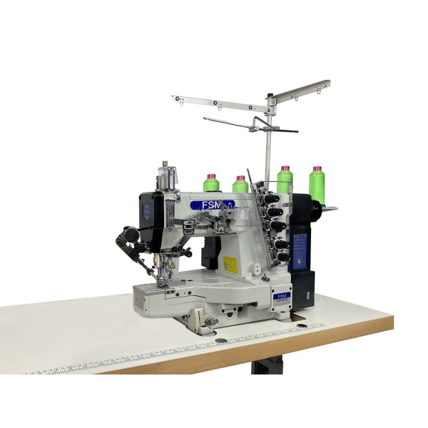 Плоскошовная высокоскоростная машина цепного стежка с цилиндрической платформой и верхним раскладчиком нити, автоматической обрезкой верхней и нижней нити, автоматическим подъемом лапки за счет шагового двигателя.