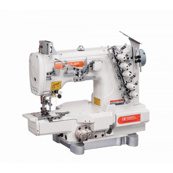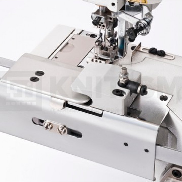 Высокоскоростная плоскошовная машина цепного стежка с верхним и нижним застилом с цилиндрической платформой выполняет двусторонний покрывающий шов и предназначена для общих швейных операций на трикотажных изделиях. Есть возможность отключения верхнего застила.