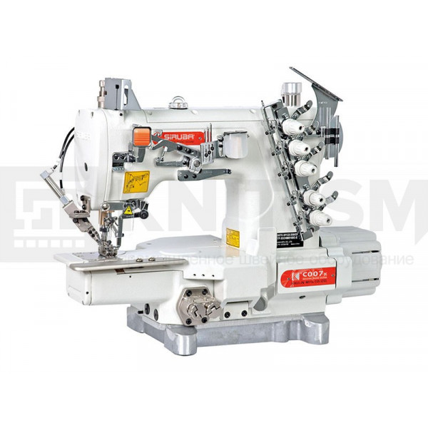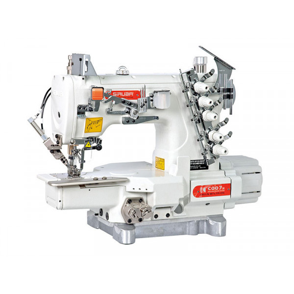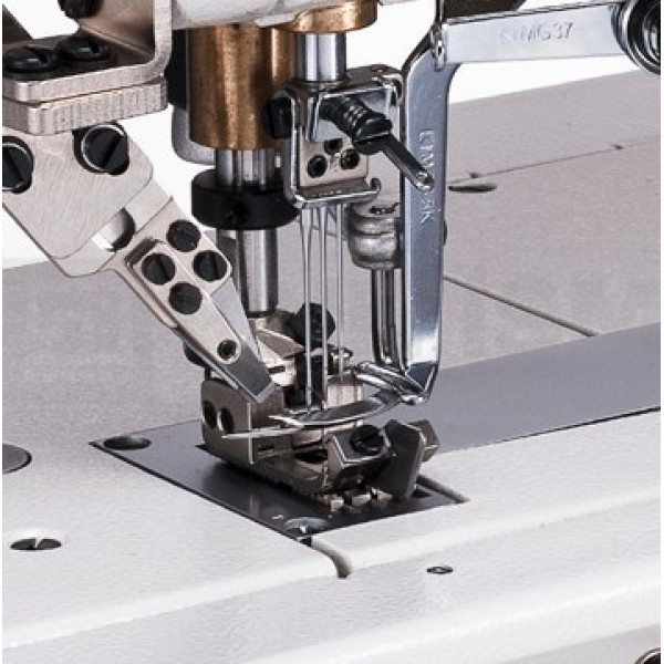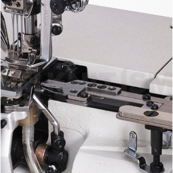 Трехигольная пятиниточная плоскошовная машина (распошивалка) с цилиндрической платформой и устройством пневматической обрезки ниток предназначена для подгибки низа изделий при пошиве нижнего белья, спортивной одежды, детской одежды (в т.ч. манжет), футболок и пр. изделий.