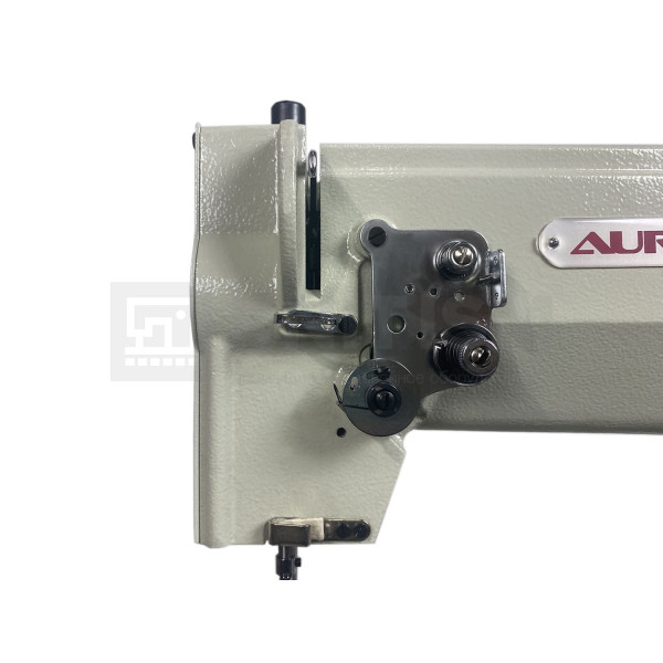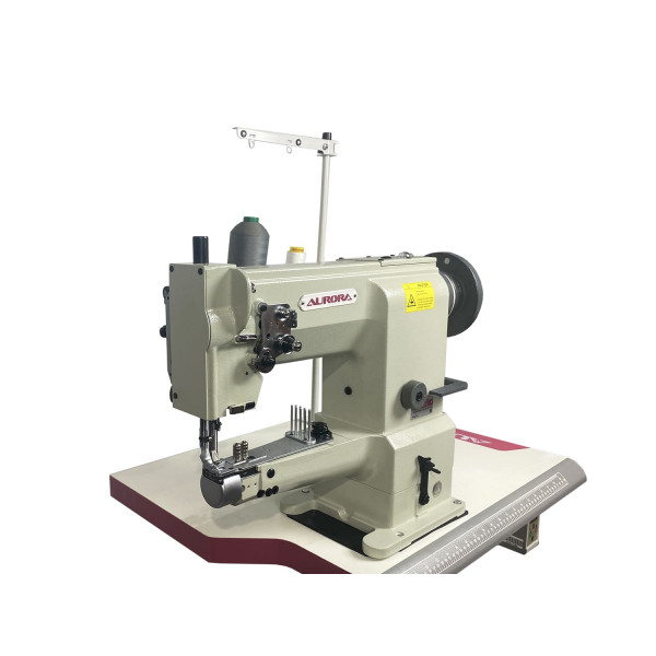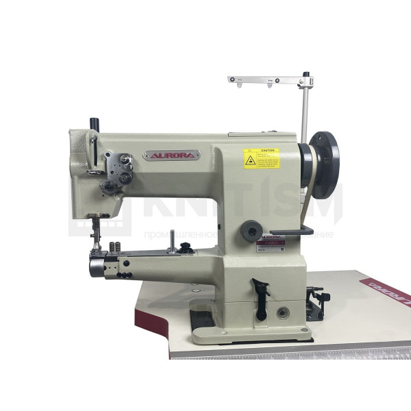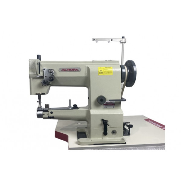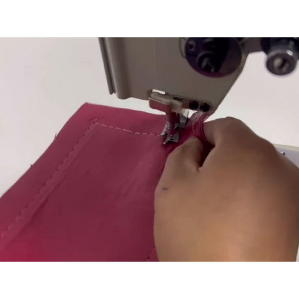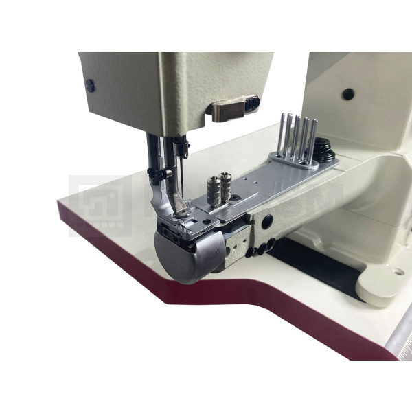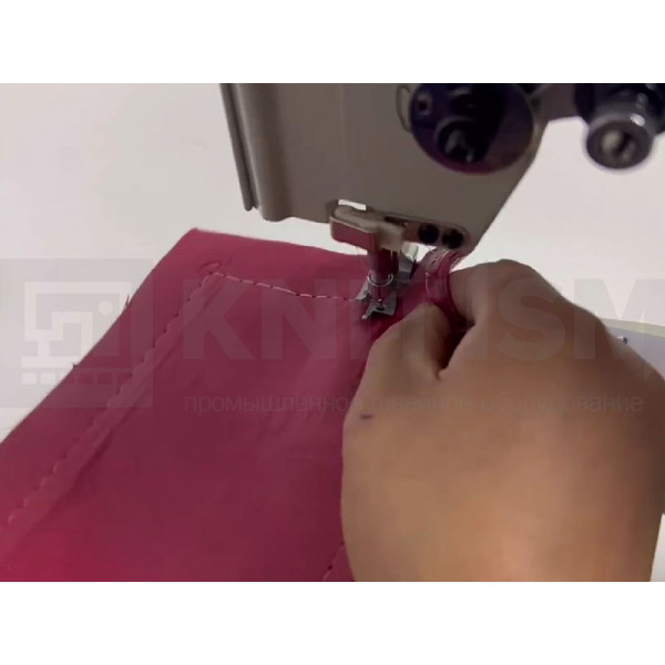 Одноигольная швейная машина челночного стежка с платформой рукавного типа и тройным (унисонным) продвижением материала, оснасткой для окантовки и увеличенным челноком. Предназначена для притачивания тесьмы или окантовки средних и тяжелых материалов при производстве сумок, обуви, кошельков, одноразовых тапочек и прочих изделий цилиндрической формы. Унисонное продвижение (зубчатая рейка, шагающая лапка и игла) гарантирует отсутствие сборения и складок, а также обеспечивает стабильную подачу. Механизм продвижения нижней транспортирующей рейки адаптирован специально для окантовки материала.