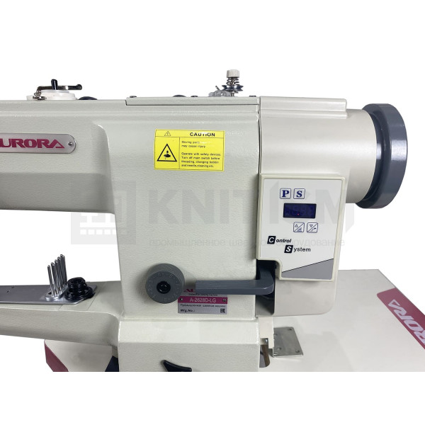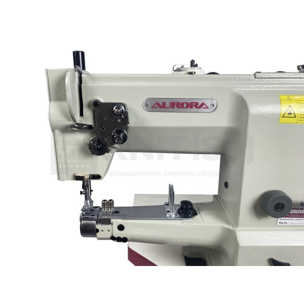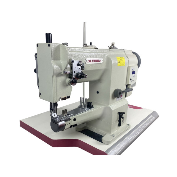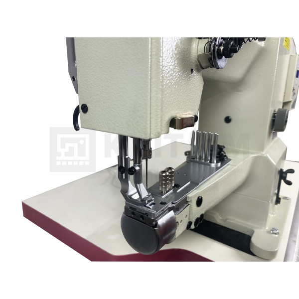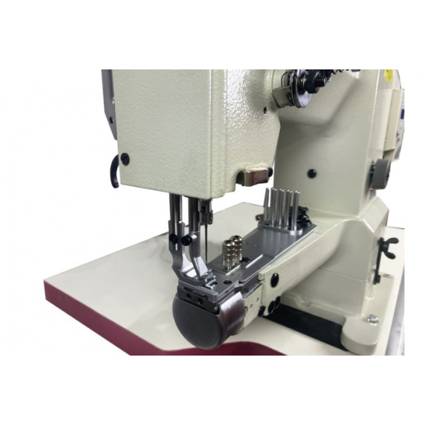 Одноигольная швейная машина челночного стежка с платформой рукавного типа и тройным (унисонным) продвижением материала, оснасткой для окантовки, увеличенным челноком со встроенным в голову сервоприводом, позиционером иглы. Предназначена для притачивания тесьмы или окантовки средних и тяжелых материалов при производстве сумок, обуви, кошельков, одноразовых тапочек и прочих изделий цилиндрической формы.
