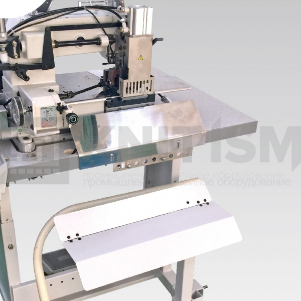 - Рабочая станция позволяет автоматизировать и упростить операцию по притачиванию лампас благодаря устройству автоматической обрезки лент с электрическим датчиком-контроллером, сокращающим расход материала, и укладчику изделий.