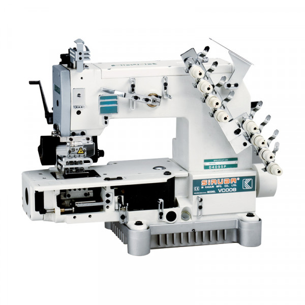 Высокоскоростная 4-х игольная поясная промышленная швейная машина двухниточного цепного стежка с цилиндрической платформой и задним роликом (пулером) предназначена для обработки поясов мужского белья, шорт, спортивной одежды и других трикотажных изделий двухниточным цепным стежком.