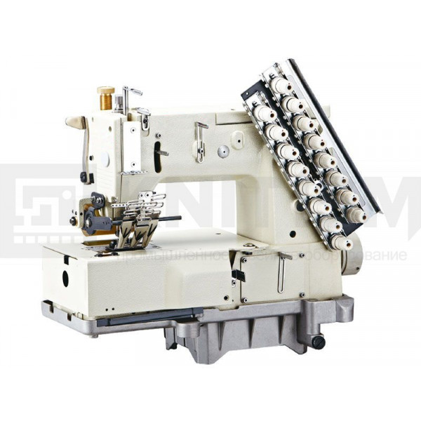 Высокоскоростная 8 игольная промышленная швейная машина двухниточного цепного стежка с плоской платформой и задним роликом (пулером) предназначена для притачивания лампас на спортивную одежду и другие трикотажные изделия.