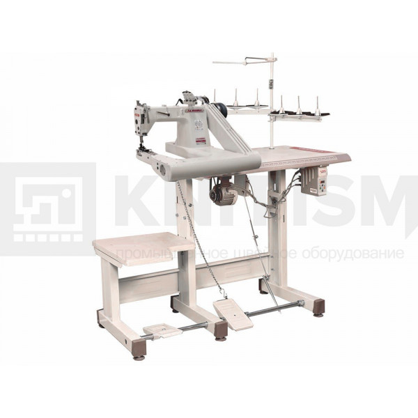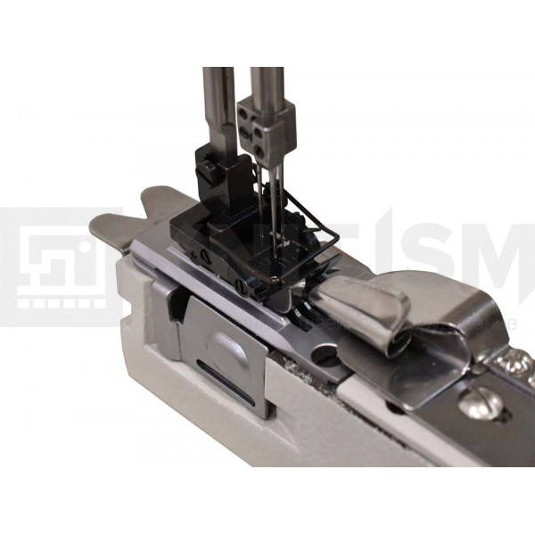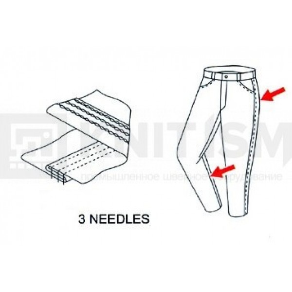 Трёхигольная машина цепного стежка с П-образной платформой предназначена для выполнения операции шов «в замок» на рукавах и боковых швах мужских сорочек, брюк и других изделий из легких и средних материалов.