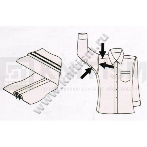Двухигольная машина цепного стежка с П-образной предназначена для выполнения операции шов «в замок» на рукавах и боковых швах мужских сорочек, брюк и других изделий из легких и средних материалов. На машине установлен пуллер для дополнительного продвижения материала с резиновыми роликами, которые обеспечивают равномерное и стабильное качество отшиваемых изделий без сборки и посадки слоев материала.
