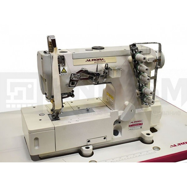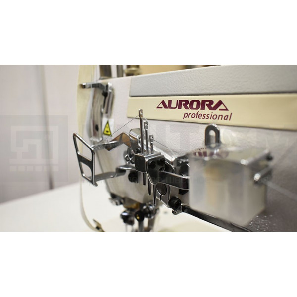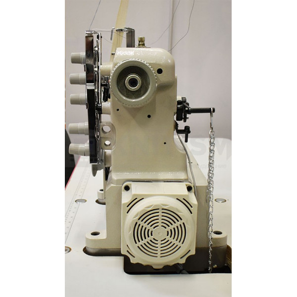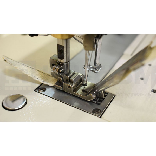 Двухигольная четырехниточная машина цепного стежка, для притачивания тесьмы. Предназначена специально для укрепления шва с помощью скрепления ленты при поперечном сшивании мужского нижнего белья или на спортивной одежде, а так же для декоративных целей. Имеет встроенный сервомотор, позиционер иглы и встроенную подсветку.