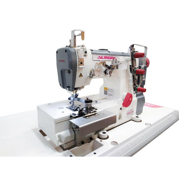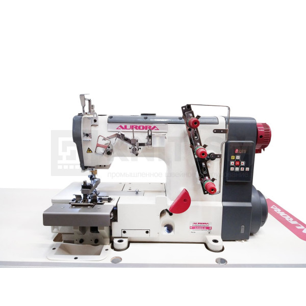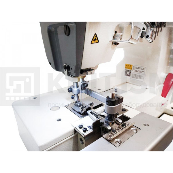 Двухигольная трехниточная машина цепного стежка с прямым приводом и боковыми ножами обрезки материала. Машина предназначена для изготовления шлёвочной ленты (шлевки) для спецодежды, джинс, брюк, юбок и т.д.
