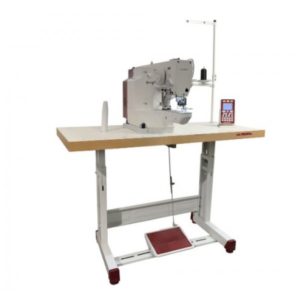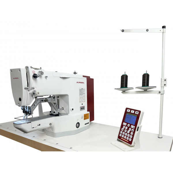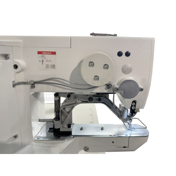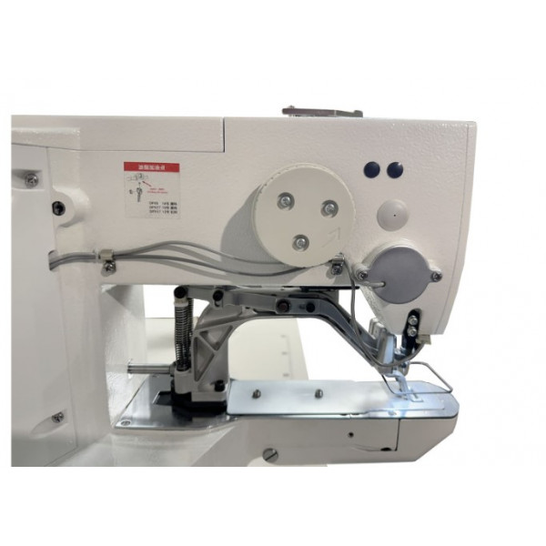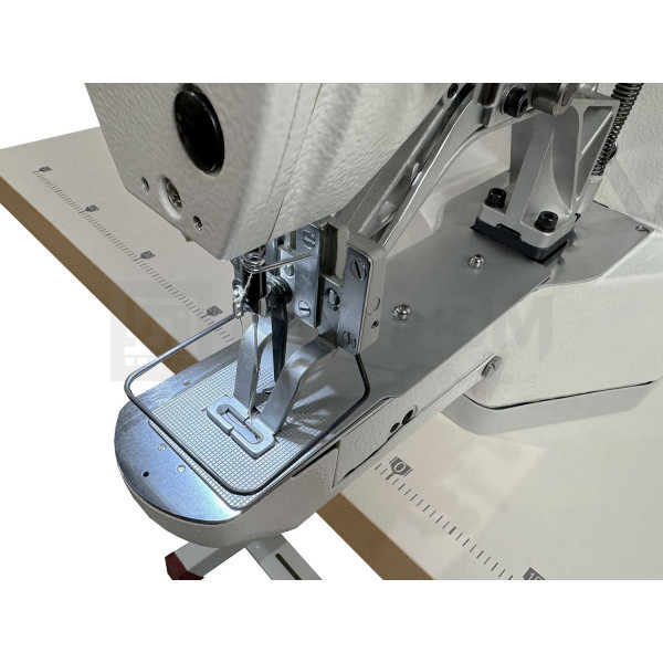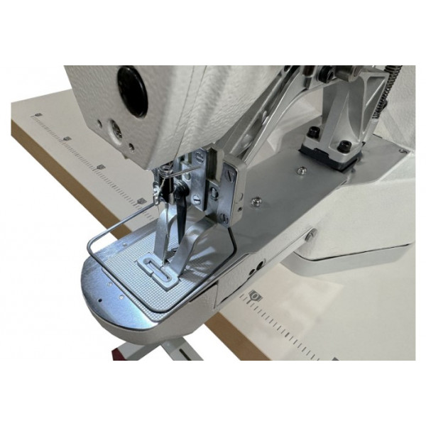 Предназначена для выполнения закрепки в поле шитья 40 х 30 мм. Установлена лапка с полем 27х5 мм. Автоматический подъем лапки и обрезка нити с электромагнитным приводом.