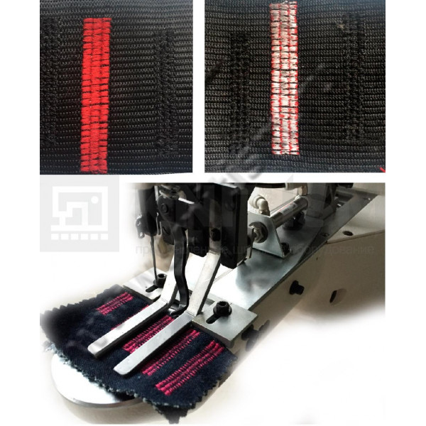 Электронная закрепочная машина зигзагообразной закрепки с прямым приводом, автоматической обрезкой нитей, автоматическим подъемом лапки и оснасткой для стачивания эластичной ленты встык. Данная закрепочная машина используется при изготовлении спортивной одежды и мужских трусов. Автоматический подъем лапки и обрезка нити с электромагнитным приводом. Возможность подключения USB карты для переноса программ шитья. Машина имеет встроенные программы шитья и возможность хранить в памяти до 199 программ шитья.
