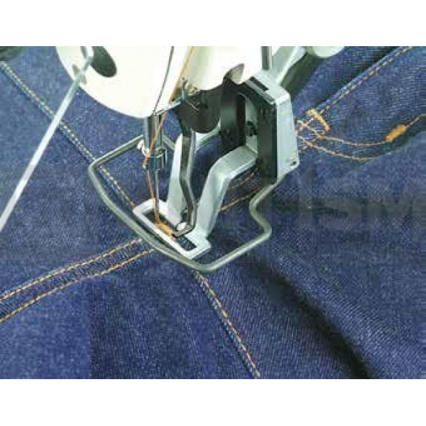 Электронная закрепочная машина с прямым приводом и увеличенным челноком, автоматической обрезкой нитей и автоматическим подъемом лапки предназначена для выполнения зигзагообразной закрепки и любых других программируемых строчек с полем шитья 30 х 40 мм на изделиях из тяжелых материалов и джинсовых тканей.